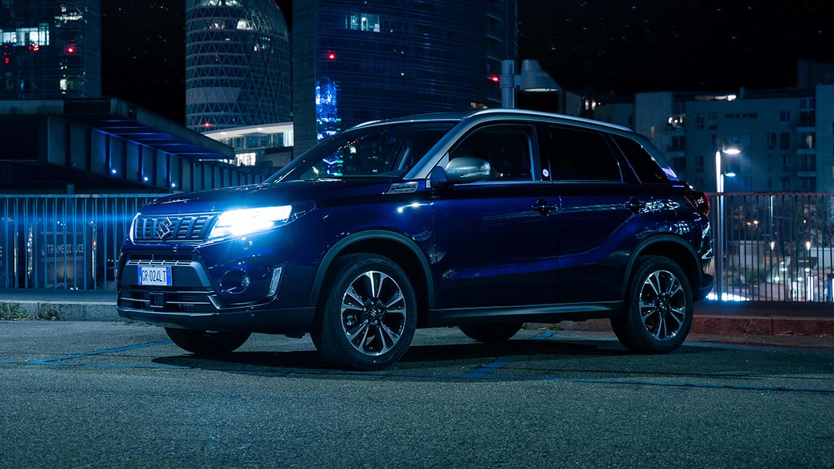 Suzuki Vitara Hybrid Yoru è una edizione speciale della vettura, con speciali colorazioni ispirate ai colori della notte, con dettagli esclusivi a contrasto e con una dotazione di serie di livello superiore che include anche il tetto apribile panoramico StarView con tendina oscurante.