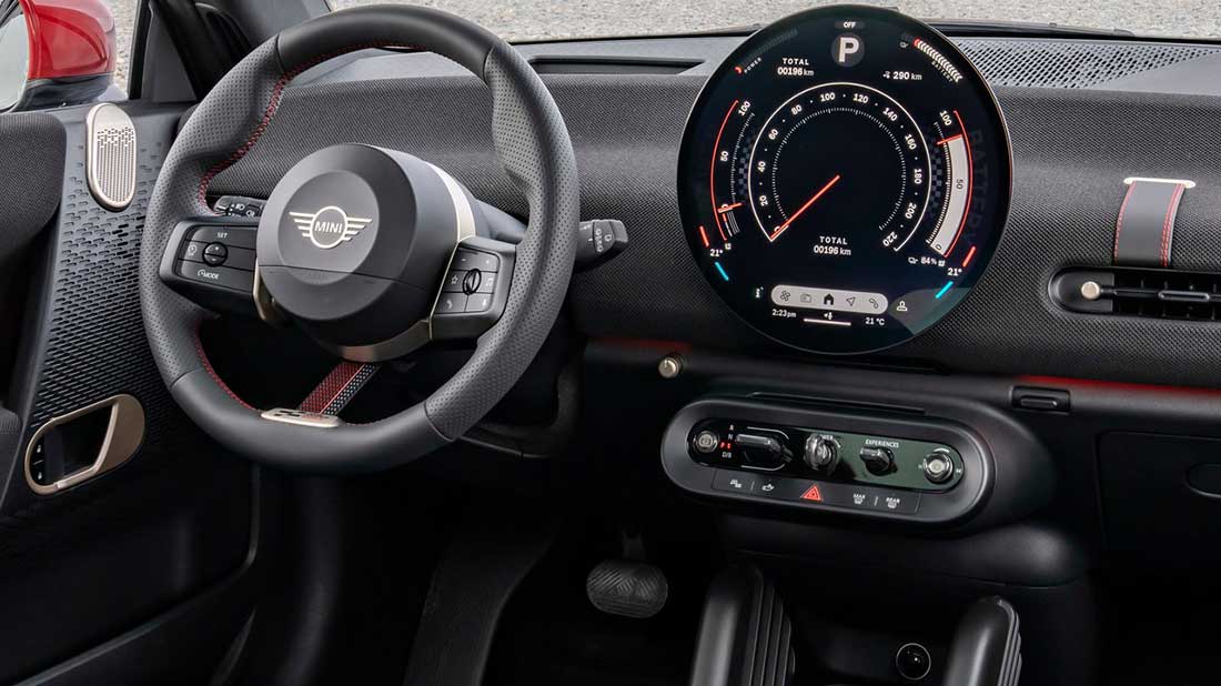 Non ha la grinta, almeno su strada, della JCW ma promette bene e soprattutto ha una dotazione praticamente full che integra anche una completa suite di sistemi di assistenza alla guida, numerose le telecamere e sensori ultrasuoni che accompagnano gli ADAS di livello 2, è possibile persino impostare il parcheggio automatico della vettura dal proprio smartphone.