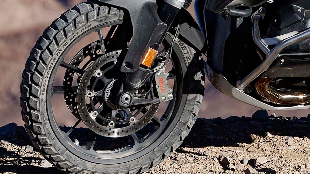 Con i pneumatici Metzeler Karoo 4 la BMW R 1300 GS esprime ottime caratteristiche di guida nell’utilizzo off road. Questi pneumatici, nati per essere polivalenti, sono infatti in grado di offrire una trazione esemplare in off road, dalle sabbie o dalle piste desertiche fino al fango più profondo, garantendo al contempo ottima resistenza all’abrasione, ai tagli e agli strappi così frequenti negli utilizzi in fuoristrada.