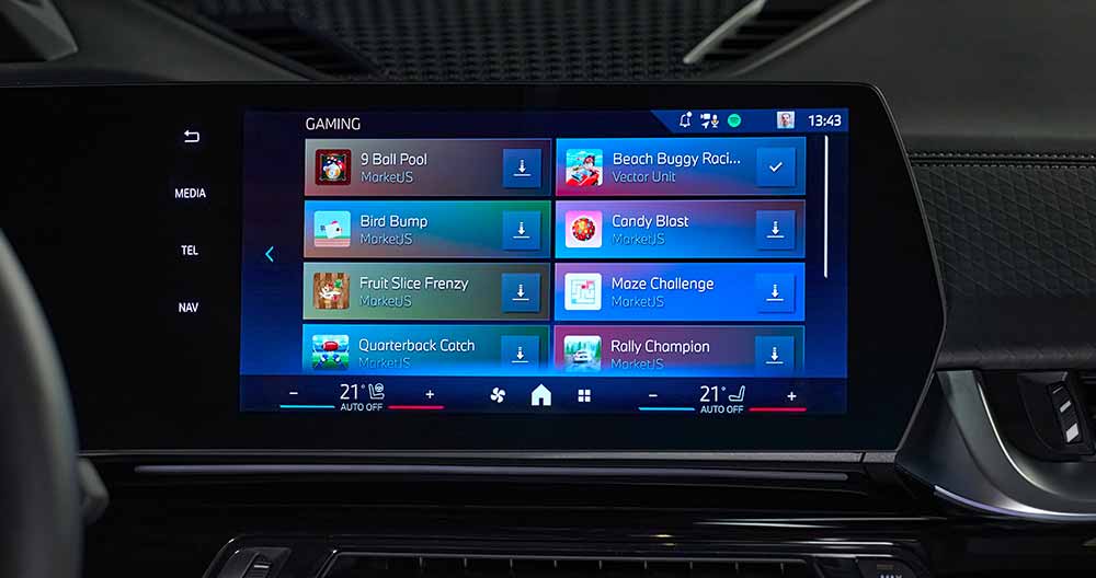 Qualsiasi controller da gioco standard con capacità Bluetooth può essere collegato al sistema di infotainment in pochi passi. BMW Digital Premium è disponibile come opzione per i modelli con BMW Operating System 9 e può essere ottenuto dal ConnectedDrive Store online, nell’app MyBMW o direttamente dall’auto.