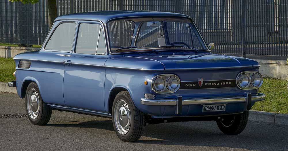 Le sue dimensioni erano compatte, grazie a una lunghezza di 3,793 metri, una larghezza di 1,490 metri, un’altezza di 1,364 metri e con un passo di 2,250 metri, la NSU Prinz 1000 sul mercato italiano era una diretta concorrente della Fiat 850.