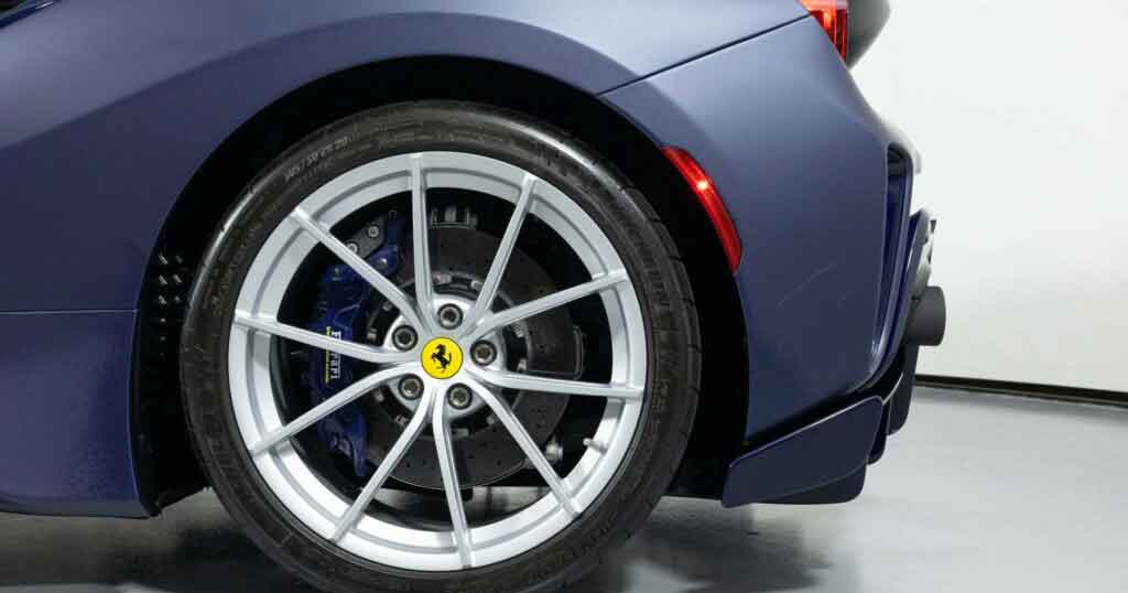 Personalizzati anche i cerchi, così come le poderose pinze freno Ferrari, nella stessa tonalità della carrozzeria.