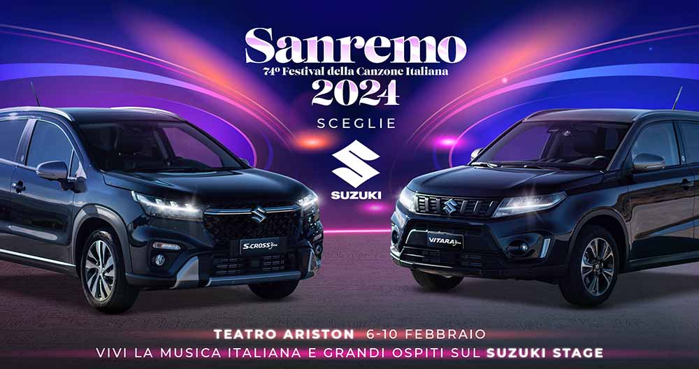 Il Festival di Sanremo sceglie Suzuki per la sua settantaquattresima edizione, in programma dal 6 al 10 febbraio 2024.