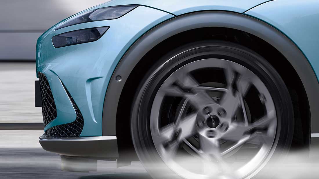 Per via delle caratteristiche specifiche della piattaforma E-GMP di Hyundai Motor Group, l’AAS copre solo le sezioni davanti agli pneumatici, senza coinvolgere completamente la parte anteriore. Per migliorare le prestazioni aerodinamiche è infatti più efficace sfruttare i benefici del fondo piatto della piattaforma, agendo esclusivamente sui flussi davanti alle ruote.