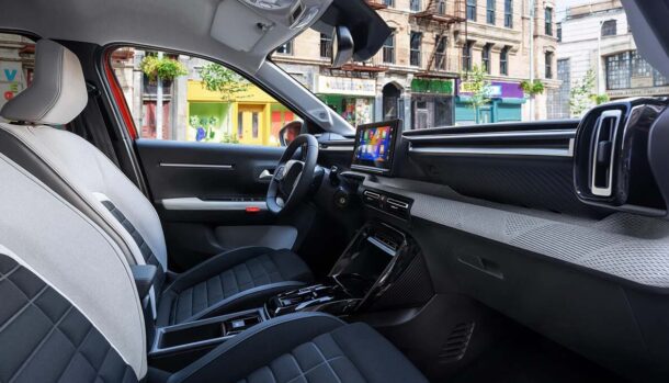 Nuova Citroën Ë-C3 ha nel suo dna semplicità e accessibilità, ma anche comfort. Proponendo per la prima volta le famose sospensioni Citroën Advanced Comfort abbinate ai nuovi sedili. Scegliere nuova Ë-C3, poi, è anche una scelta di sostenibilità. Utilizza un pacco batterie LFP (litio ferro fosfato) da 44 kWh per garantire un’autonomia di guida fino a 320 km nel ciclo WLTP. La capacità di ricarica rapida a corrente continua da 100 kW consente di passare dal 20 all’80% della capacità in 26 minuti. L’auto soddisfa anche il quarto valore di Citroën, l’audacia, introducendo il nuovo logo ovale e un audace linguaggio stilistico caratterizzato da linee verticali e orizzontali contrastanti. Il profilo laterale presenta linee scolpite che catturano la luce, mentre il posteriore presenta una scultura tecnica con un logo ovale e gruppi ottici che richiamano il design frontale. Le ruote grandi contribuiscono a una sensazione di stabilità, tutto racchiuso in un veicolo compatto di soli 4,01 m di lunghezza e 1,76 m di larghezza.