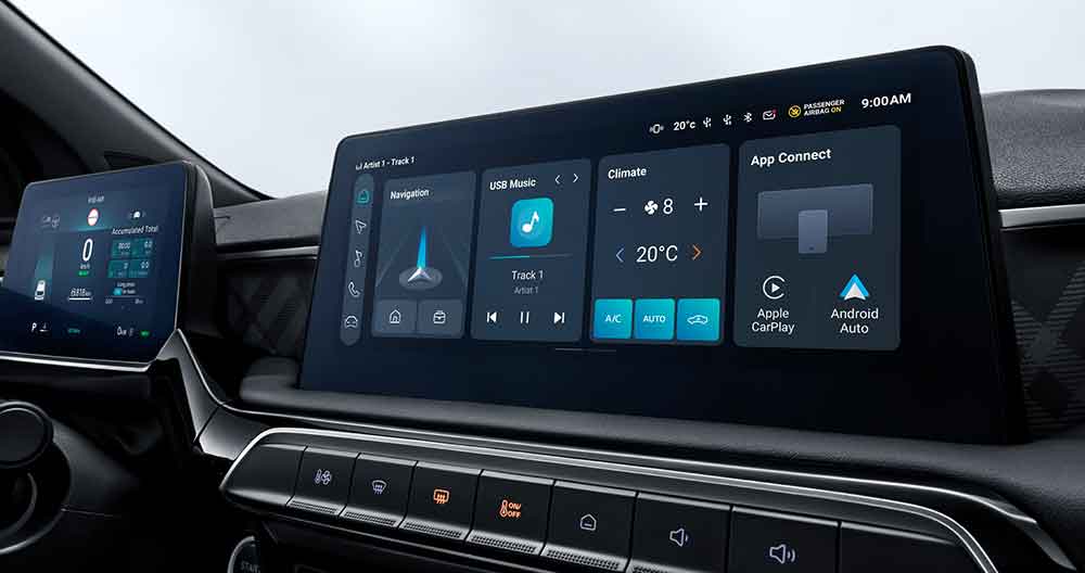 La MG3 Hybrid presenta un equipaggiamento di livello elevato e generosità di spazio nell’abitacolo ai vertici della categoria. Ben tre le varianti per i clienti europei: Standard, Comfort e Luxury, per competere con gli altri modelli del segmento B. Molto interessante è il cockpit a doppio schermo. Il guidatore ha a disposizione uno schermo digitale da 7 pollici e un sistema di infotainment centrale con display touch da 10,25 pollici. Gli ingegneri MG hanno lavorato molto sulla grafica e sulla reattività dei due schermi. MG iSMART offre ai clienti della MG3 livelli di connettività e funzionalità che si trovano più comunemente associati ai modelli di fascia premium. Altri equipaggiamenti che caratterizzano la dotazione di base della vettura sono il climatizzatore, l’impianto audio con connessione Bluetooth, quattro porte USB, i sensori di parcheggio posteriori e la telecamera. La MG3 adotta anche i più avanzati sistemi di assistenza alla guida (ADAS). Per una maggiore sicurezza la console MG Pilot include il sistema di mantenimento della corsia (LKA) con avviso di superamento della linea di carreggiata (LDW). Oltre al cruise control adattivo (ACC), l’avviso di collisione anteriore (FCW) e il sistema di assistenza al traffico (TJA).