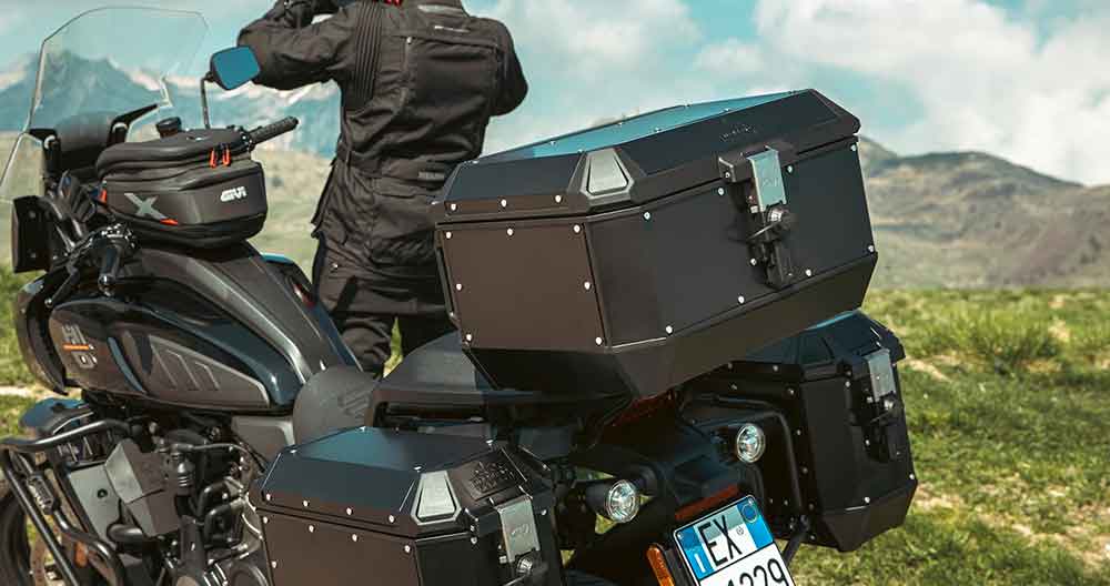 Realizzate in alluminio in doppia versione, Natural e Black, accomunate da design essenziale, praticità di utilizzo e sistema di aggancio Monokey, le valigie ALASKA sono una scelta innovativa. Il sistema di apertura, vede la presenza di cerniere “a pettine”, capaci di garantire una rigidità strutturale maggiore rispetto a quelle tradizionali. Innovativo il sistema brevettato WIRELEASE, che prevede lo sgancio della valigia dalla piastra, o dal telaio laterale. Nelle laterali è stato implementato anche un gancio posteriore, che nella fase di rilascio permette alla valigia di restare ancorata al telaietto inclinata verso l’esterno. Consentendo così di aprire e chiudere comodamente il coperchio senza interferire con il bauletto o l’eventuale bagaglio fissato sulla sella. Tutte le valigie ALASKA sono inoltre dotate di robuste maniglie per il trasporto a mano (due nel caso dei topcase, una nel caso delle laterali), integrate nella cornice stessa della valigia.
