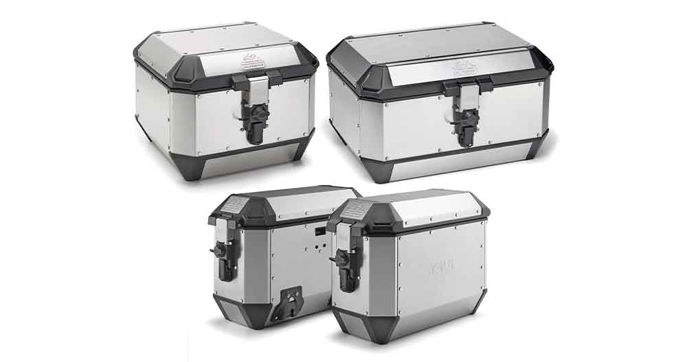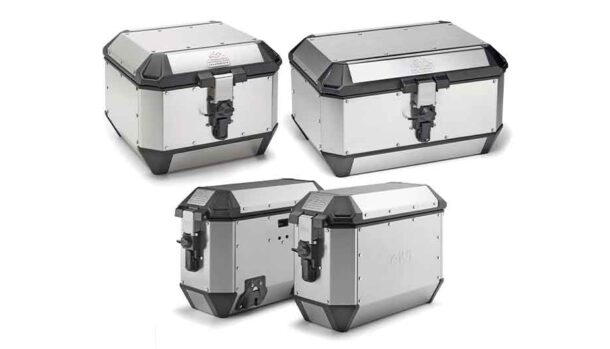 Le valigie in alluminio Monokey ALASKA che rappresenta ormai uno dei capisaldi all’interno della gamma GIVI, comprendono una coppia di laterali da 36 litri e 2 topcase, da 56 e 44 litri. Per la progettazione e la realizzazione di questa linea sono adottati accorgimenti tecnici all’avanguardia, che hanno permesso al marchio GIVI di registrare e ottenere tre nuovi brevetti.