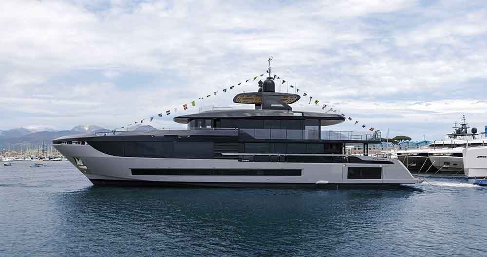 Uno yacht a tre ponti progettato dall’Ufficio tecnico del cantiere insieme al designer Alberto Mancini, in collaborazione con lo studio Verme che ha curato l’ingegneria navale. Uno yacht nel quale forma, volumi significativi (330 GT) e contenuto si combinano in modo innovativo e distintivo. Dove la personalità dell’estetica “minimal” con le falchette del ponte superiore costruite interamente in vetro, si traduce in un nuovo stile di vita “seamless” votato al piacere di stare in mare. Le grandi superfici vetrate del main deck e dell’upper deck sono a tutta altezza. In parte apribili per dare continuità agli spazi in & out. Il risultato ottenuto è una “villa sul mare”, nella quale sono presenti tutti quegli elementi che hanno reso la serie Mangusta Oceano un importante successo commerciale negli Stati Uniti.