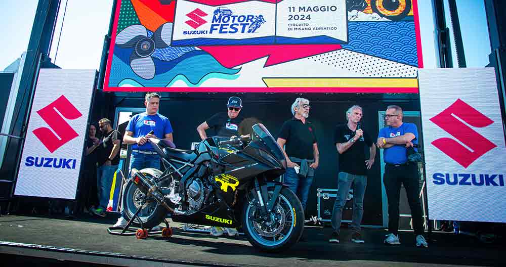 L’evento è stato inaugurato alla presenza del Sindaco di Misano e Direttore dell’Autodromo, del Presidente di Suzuki Italia Massimo Nalli. Presenti anche i tre campioni del Mondo e icone Kevin Schwantz, Marco Lucchinelli e Franco Uncini. La giornata è stata scandita da molti appuntamenti. A iniziare dal sold out registrato per tutti i turni in pista dedicati ai proprietari di moto e auto Suzuki. Tra i cordoli del tracciato del motomondiale sono scese 103 moto Suzuki e 51 Swift Sport. Un successo che testimonia l’affetto e il coinvolgimento verso il marchio. L’ospite speciale della festa a due ruote è stata la GSX-8R CUP che è stata presentata al pubblico e stampa. La versione della sportiva basata sul bicilindrico frontemarcia da 776 cc, 4 valvole per cilindro da 83 cv a 8.500 giri/min con una coppia massima di 78Nm a 6.800 giri/min è pensata per la pista. Si tratta di un modello in fase di sviluppo e il Suzuki Motor Fest è stata l’occasione per farla provare alla stampa e proseguire così la fase di sviluppo.