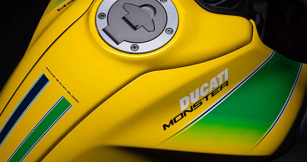 Ducati omaggia Ayrton Senna, un personaggio dal carisma unico nella storia della Formula 1 e dello sport. Al grande campione è dedicata la Ducati Monster Senna, modello a tiratura limitata vero e proprio tributo alla leggenda.