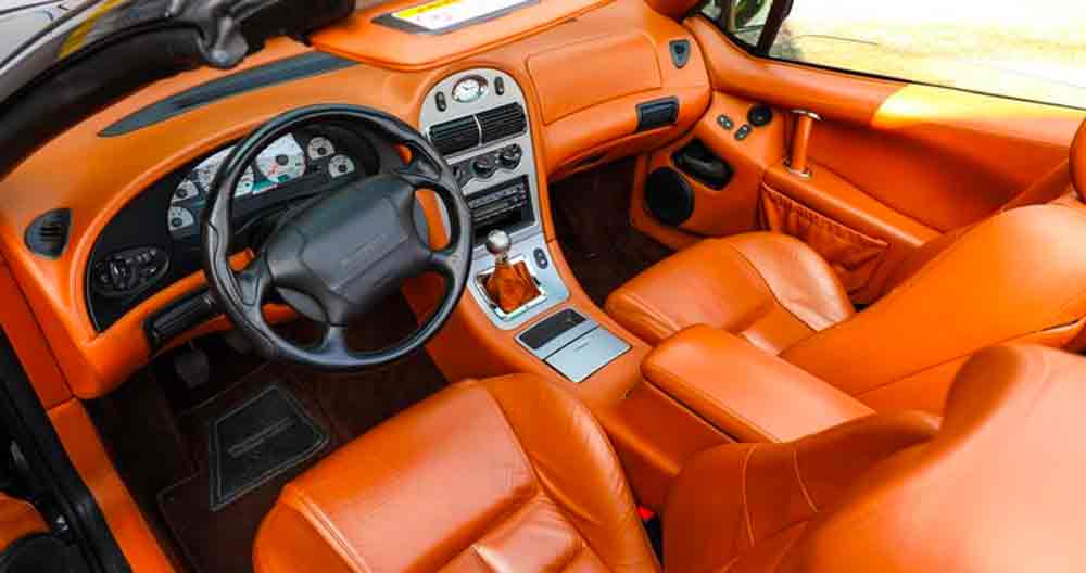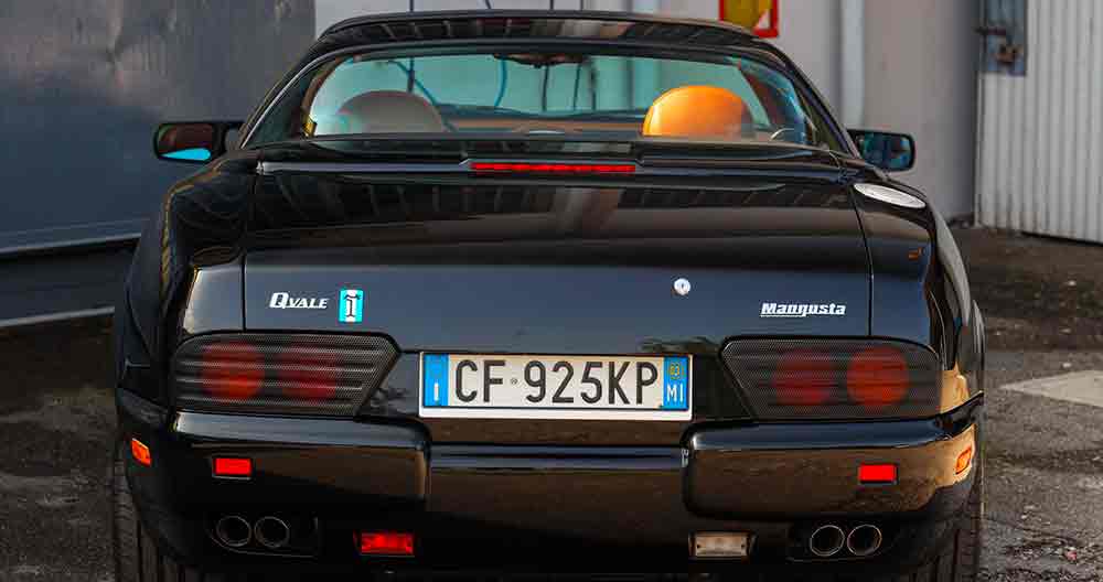 La pelle della Qvale Mangusta era innovativa anche perché in lamiera saldata in modo da conferirle un’altissima resistenza torsionale e far sì che nessuna parte andasse mai in carico di punta. Ed era avvitata sul telaio, un concetto nuovo per l’epoca, che consentiva di rimpiazzare direttamente i pannelli con facilità in caso di danneggiamenti. Per il progetto dello chassis, non a caso, era stato chiamato un designer di Formula 1, Enriques Scalabroni, con esperienza in Ferrari, Dallara e Williams. Altra forte peculiarità della vettura era il tetto rigido che ruotava e spariva dietro il sedile posteriore grazie a un agile sistema creato ad hoc, denominato Roto-Top. Il motore è un portentoso V8 di 4,6 litri che sviluppa 315 CV, con cambio manuale a 5 marce. Gli interni in pelle, rifiniti con un’alta dose di artigianalità, sono ancora praticamente intatti nell’esemplare a basso chilometraggio che sarà disponibile in asta su Car & Classic. In questo caso l’elegante vernice nera è abbinata alla tappezzeria in color cuoio e, visto lo stato di entrambi, sembra in effetti incredibile che l’esemplare abbia 21 anni. Di fatto è stato ben mantenuto ed è completamente funzionante in tutte le sue parti.
