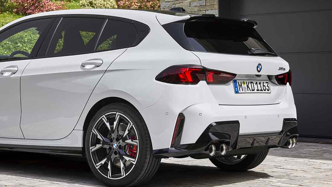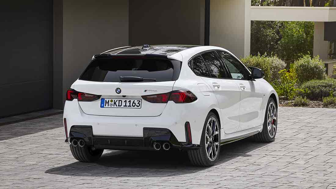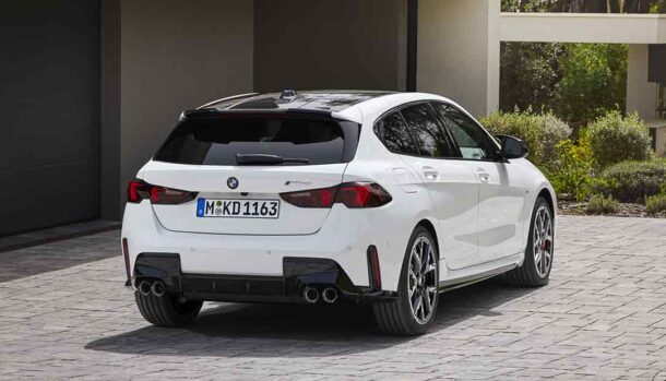 Per la BMW Serie 1 gli ingegneri della casa produttrice hanno studiato motori altamente efficienti con tecnologia mild hybrid a 48 volt e un processo di produzione progettato per conservare le risorse e riciclare i materiali ottimizzano la sostenibilità nell’intero ciclo di vita del prodotto. Il suo carattere progressista si riflette anche negli interni ridisegnati, in una gamma ampliata di sistemi di guida e di parcheggio automatizzati, nel nuovo BMW iDrive con QuickSelect e negli innovativi servizi digitali basati sul BMW Operating System 9. L’aura sportiva della BMW Serie 1 è sottolineata nell’ultima generazione di modelli dalle tipiche proporzioni: un cofano lungo, una cellula passeggeri ben arretrata, una linea del tetto che scorre in modo dinamico e un posteriore potente. Le dimensioni del modello a cinque porte sono cambiate solo leggermente rispetto al modello precedente. Bello il pacchetto M Sport e l’equipaggiamento opzionale M Sport Design, disponibili al lancio sul mercato europeo, che rendono la nuova BMW Serie 1 ancora più dinamica. Le sue caratteristiche di design specifiche M includono grandi prese d’aria sulla grembialatura anteriore, minigonne laterali pronunciate e un elemento diffusore tridimensionale nella grembialatura posteriore.