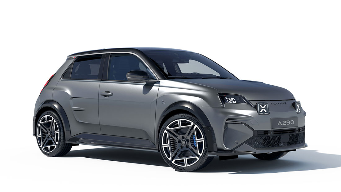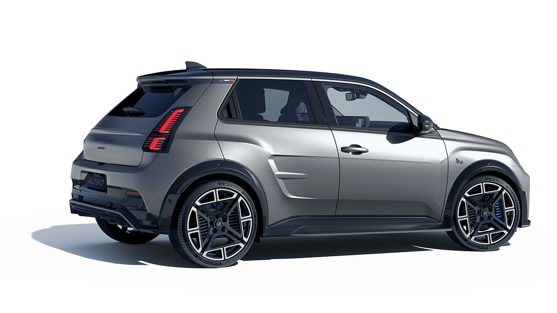 La gamma Alpine A290 comprende 2 livelli di allestimento GT e GTS e 4 versioni totali. La versione entry level GT è dotata di motore da 180 cv e, come i livelli superiori della gamma, ha una batteria da 52 kWh, caricabatteria a bordo da 11 kW, ricarica in corrente continua da 100 kW e pompa di calore. I cerchi in lega da 19’’ Iconic sono dotati di pneumatici specifici Michelin Pilot Sport EV.
