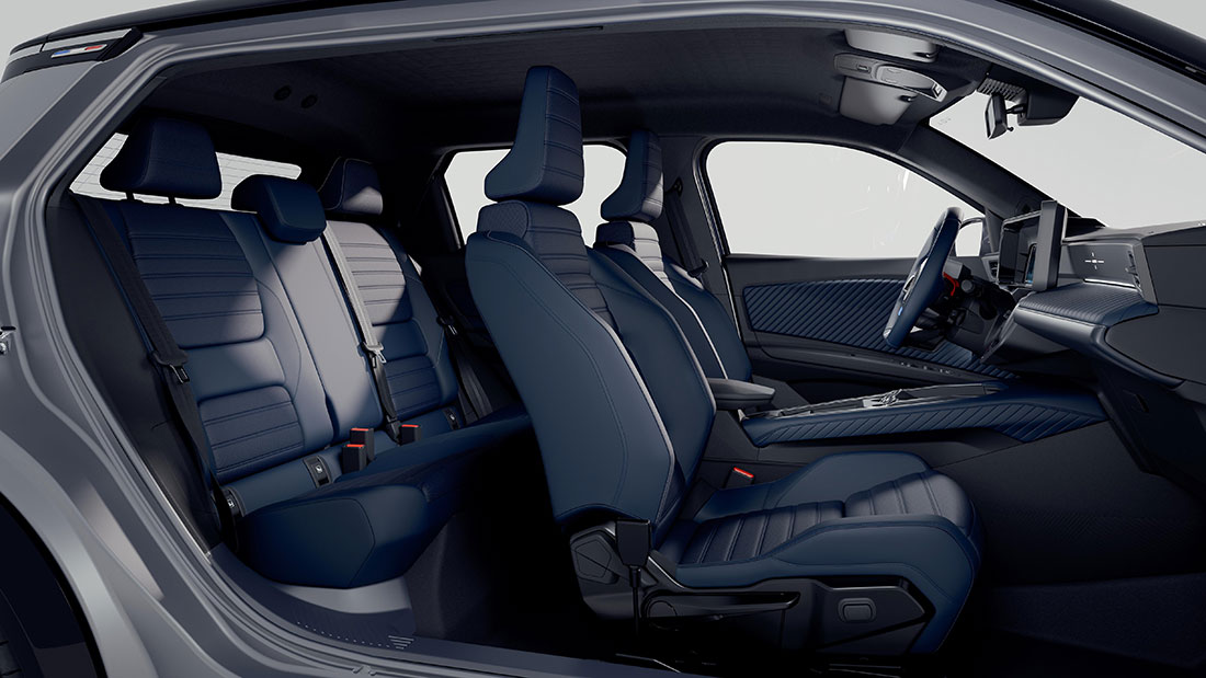 Sono riscaldati di serie su tutte le versioni e rivestiti di materiali ecocompatibili. Nei primi livelli di allestimento, il rivestimento è in tessuto TEP (15% di plastica riciclata e fibra di canapa) abbinato a tessuto 100% riciclato, di colore Deep Blue con cuciture a contrasto grigio ed il logo Alpine sulla parte superiore dello schienale. Anche cruscotto, i lati della consolle centrale ed i pannelli porta sono imbottiti con tessuto TEP.