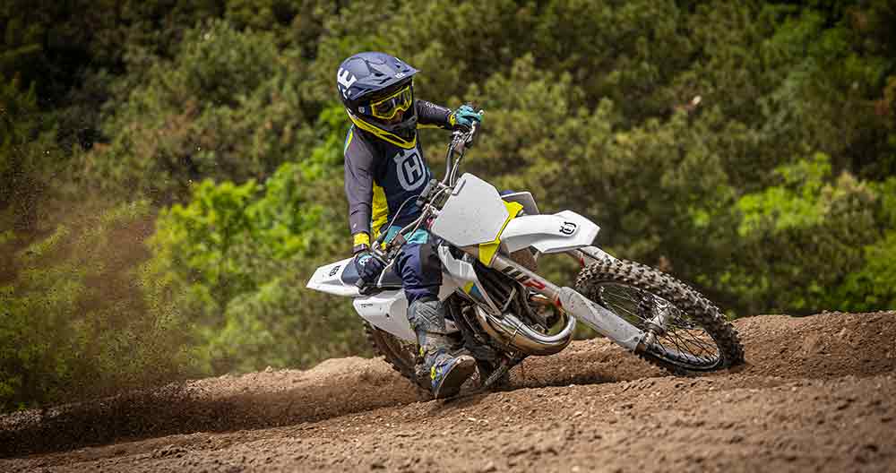Il motore a 2 tempi da 85 cc beneficia di diversi nuovi componenti, tutti introdotti per creare una maggiore potenza ai bassi e medi, senza sacrificare le prestazioni ai massimi regimi. Gli aggiornamenti includono una nuova testa, la candela, l’accensione e lo scarico. Infine, rispetto alla generazione precedente, il motore è stato ruotato di tre gradi verso l’alto nella parte anteriore. Facendo perno sullo stesso punto di montaggio del forcellone, il peso è distribuito in modo più efficace, per migliorare in curva e sui salti. Nuovo anche il forcellone, più leggero di 300 g grazie a un processo di fusione perfezionato. Combinato con il nuovo telaio e con il nuovo mono, contribuisce a ridurre l’altezza complessiva della TC 85. Queste modifiche, introdotte insieme alle nuove plastiche ancora più ergonomiche, garantiscono ai giovani piloti una maggiore facilità di movimento sulla moto. Ciò consente loro di gareggiare con un controllo migliore in tutte le condizioni. Particolare la triangolazione creata dalle nuove pedane, dal manubrio e dalla sella più bassa che migliora ulteriormente l’esperienza di guida e rende questo modello di nuova generazione incredibilmente facile da guidare.