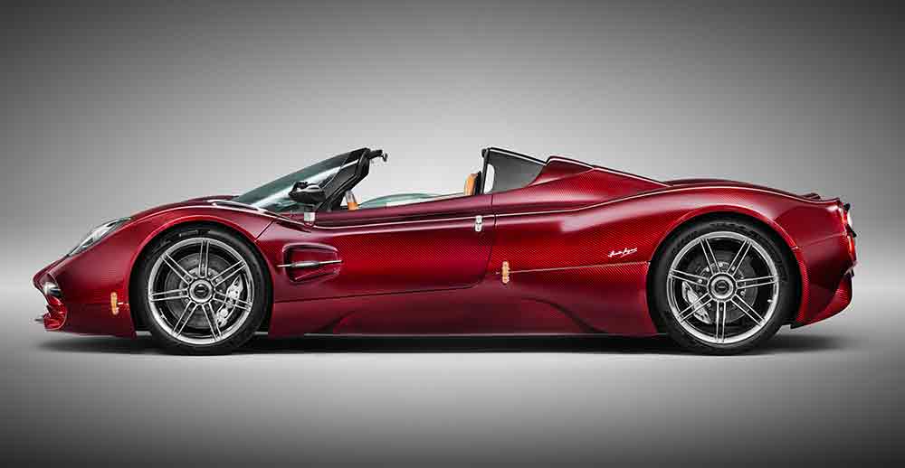 La Huayra Roadster è una vettura in cui ogni componente meccanico è orgogliosamente esposto, celebrando la cura di ogni singolo dettaglio. «Tutto doveva essere unico, come una macchina ricavata da un blocco di marmo di Carrara». Così Horacio Pagani racconta questo modello, un omaggio a cielo aperto al Dio del Vento. L’intero progetto occupa un posto speciale nel cuore di tutto il team Pagani, poiché rappresenta la prima istanza di una roadster più leggera della controparte coupé. Un risultato raggiunto in quasi sei anni di sviluppo, grazie a una riprogettazione completa di tutti i componenti e alla creazione di nuovi materiali compositi avanzati, come il Carbo-Triax HP52 combinato con il Carbo-Titanium.