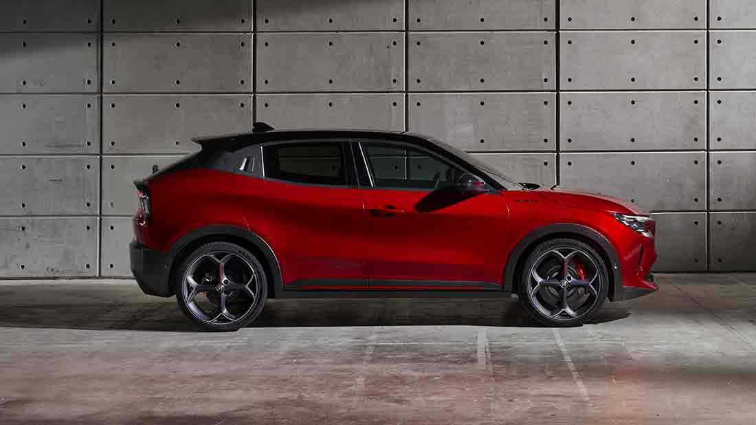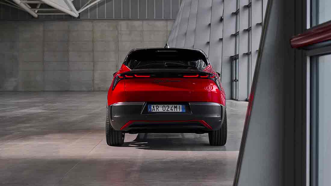 Un linguaggio di design fortemente emozionale con elementi stilistici funzionali radicati nell’heritage del marchio come l’iconica “Coda Tronca”, esempio lampante di stile e funzionalità. La coda tronca, infatti, oltre ad omaggiare vetture iconiche come la leggendaria Giulia TZ, è funzionale ad una migliore aerodinamica che ne garantisce maggiore velocità, agilità ed efficienza. Lo “sguardo” deciso del frontale con la fanaleria “3+3” ed i gruppi ottici Full Led Matrix adattivi rappresentano una firma caratteristica così come il leggendario scudetto per la prima volta disponibile in due varianti, denominate Leggenda e Progresso. La prima variante, Leggenda, prevede una griglia nera impreziosita dalla firma Alfa Romeo in caratteri corsivi, che evoca le sportive Alfa Romeo degli anni Venti e Trenta del secolo scorso. La variante Progresso, ispirata direttamente alla nuova Alfa Romeo 33 Stradale, offre una reinterpretazione estremamente audace e sportiva di croce e biscione.