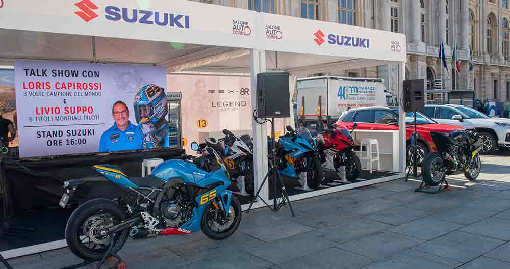 Suzuki GSX-8R Legend Edition protagonista assolute al Salone dell’Auto di Torino. I modelli speciali dedicati ai grandi campioni conquistano il pubblico. Il tributo è per Lucchinelli, Uncini, Schwantz, Capirossi.