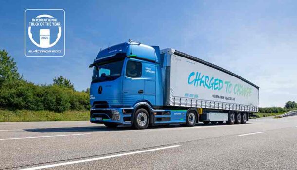 Mercedes-Benz eActros 600 a trazione elettrica a batteria è stato eletto l’International Truck of the Year 2025. Per la proposta Mercedes il premio più importante di settore.