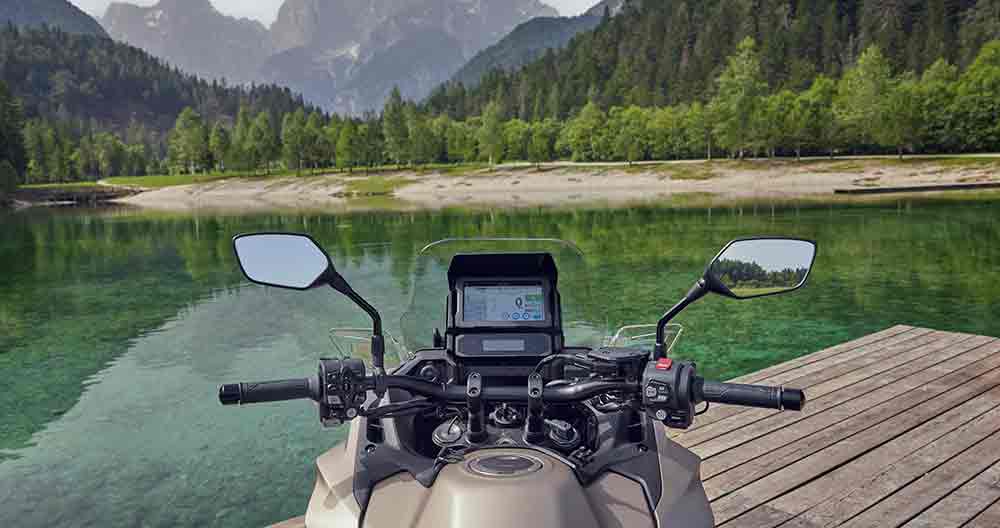 Un fondamentale aggiornamento è l’introduzione della versione Electronic Suspension. Le avanzate Showa EERA offrono un’ottimizzazione dello smorzamento idraulico in tempo reale. La dotazione di serie dalla NT1100 è ricchissima. Abbiamo schermo touch TFT a colori da 6,5 con grafiche del menù personalizzabili e connettività Bluetooth, Apple CarPlay e Android Auto per smartphone; Cruise Control, manopole riscaldabili, due prese di ricarica una da 12V e l’altra USB-A, indicatori di direzione a disattivazione automatica, segnalazione della frenata di emergenza ESS (Emergency Stop Signal) e cavalletto centrale, tutto di serie.