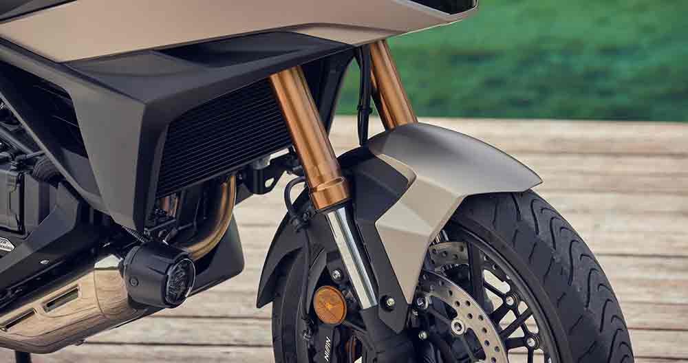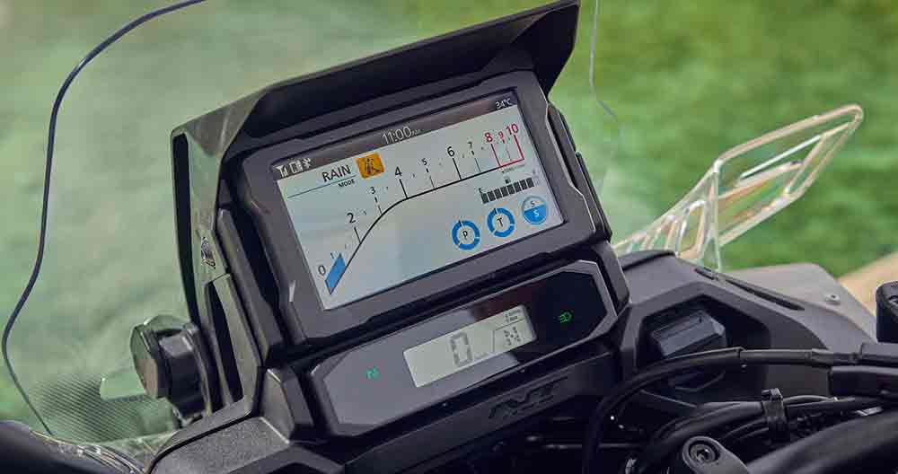La NT1100 rimane fedele a sé stessa e al concetto di ‘touring-crossover’ migliorando i livelli di comfort e praticità. I profili aerodinamici rivisti garantiscono una miglior protezione dal vento. Il parabrezza può essere regolato con la sola mano sinistra rimanendo seduti. La sella ridisegnata è più ampia e offre maggior supporto durante i viaggi. Le valige laterali sono state riviste nei volumi e ampliate così da ospitare un casco integrale ciascuna. L’intervento dell’elettronica a supporto degli ausili alla guida è stato nettamente migliorato grazie all’introduzione della Piattaforma Inerziale (IMU) a 6 assi. Questa assicura grande sicurezza tramite lo HSTC (Honda Selectable Torque Control) con Controllo Antimpennata integrato. L’ABS con funzione Cornering e il Controllo del Sollevamento del Posteriore.