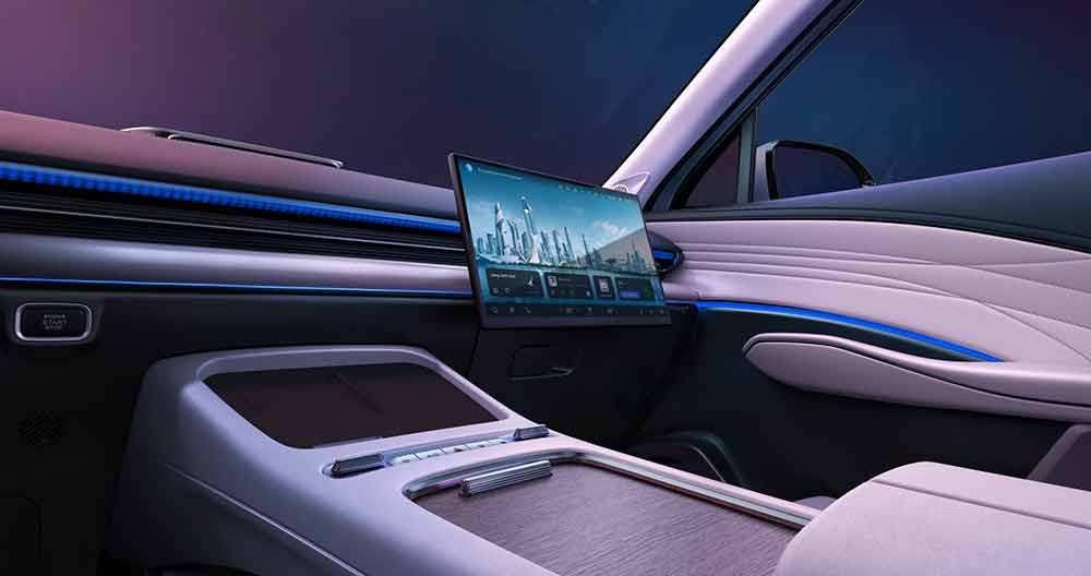 Entrando nell’abitacolo di OMODA 7, lo schermo scorrevole da 15,6 pollici con sistema star-rail cattura immediatamente l’attenzione. Equipaggiato con il chip intelligente Snapdragon 8155, il display consente ai passeggeri di passare agevolmente da una funzione all’altra sfiorando lo schermo con quattro dita e consente loro di godersi l’intrattenimento in punta di dita, offrendo un’esperienza interattiva fluida e inedita, dallo stile futuristico. Questo schermo di controllo centrale ad altissima definizione da 2,5K visualizza immagini chiare e distinguibili anche quando l’ambiente è completamente illuminato.