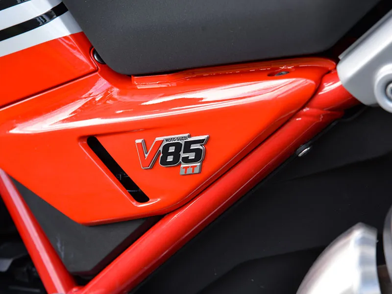 Rispetto alla precedente generazione, la nuova V85 cambia radicalmente nel frontale, ora caratterizzato dal doppio proiettore circolare che include al suo interno luci a LED con DRL che delimitano la sagoma dell’aquila, simbolo del Marchio.