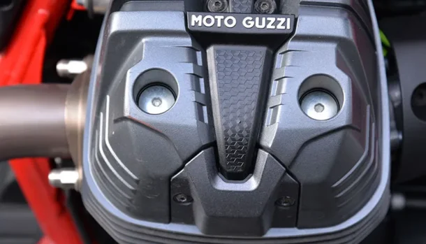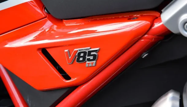 Altra peculiarità della V85 è il carter secco, ne deriva la totale assenza di un serbatoio esterno dell’olio. Tanti i vantaggi: minori attriti, minori perdite di potenza e libertà della moto di raggiungere un angolo di rollio e beccheggio elevato senza avere problemi di lubrificazione.