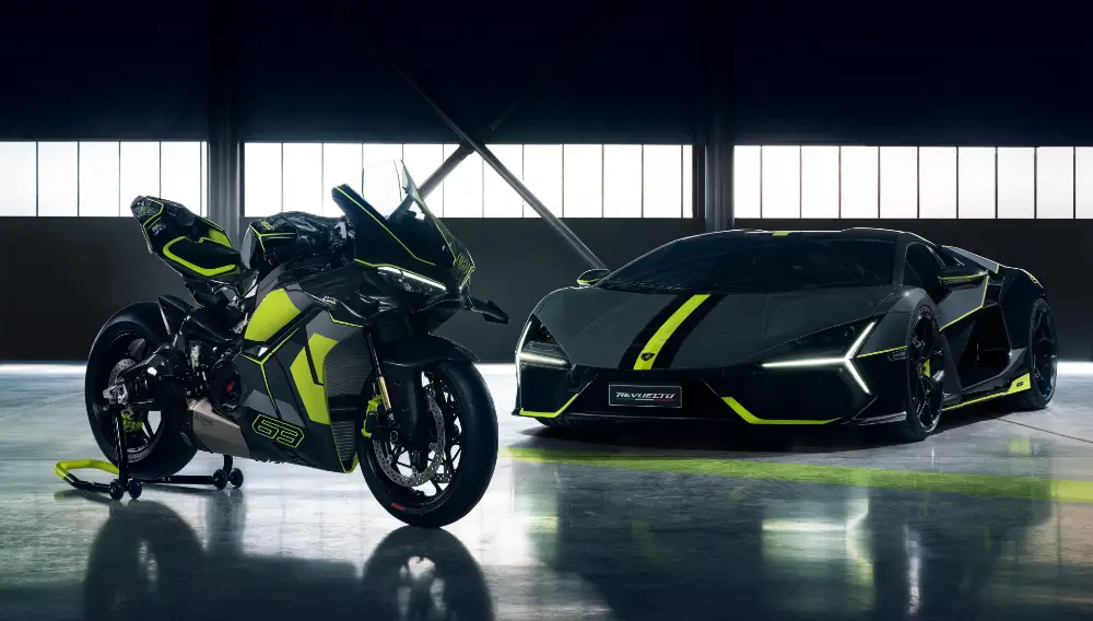 Questo apre il terzo capitolo della partnership tra Ducati e Lamborghini. Due aziende simbolo dell’Italia nel suo insieme, che condividono gli stessi valori di tecnologia sofisticata, sportività ed esclusività. Due marchi iconici che rappresentano l’eccellenza italiana a livello mondiale. Entrambi radicati nel cuore della Motor Valley della regione Emilia, dove passione, ingegno e competenza si uniscono.L’ispirazione dietro la Panigale V4 è la Revuelto. La prima supersportiva ibrida HPEV (High Performance Electrified Vehicle) di Automobili Lamborghini. Un nuovo nuovo punto di riferimento in termini di prestazioni, tecnologia di bordo ed emozioni di guida. Il piacere di guida assoluto provato al volante è fornito in gran parte dai 1015 CV totali generati dal propulsore. La potenza di un nuovo motore a combustione interna V12 con tre motori elettrici ad alta densità e un innovativo cambio trasversale a doppia frizione. Il Revuelto offre prestazioni e emozioni di guida mai viste prima.
