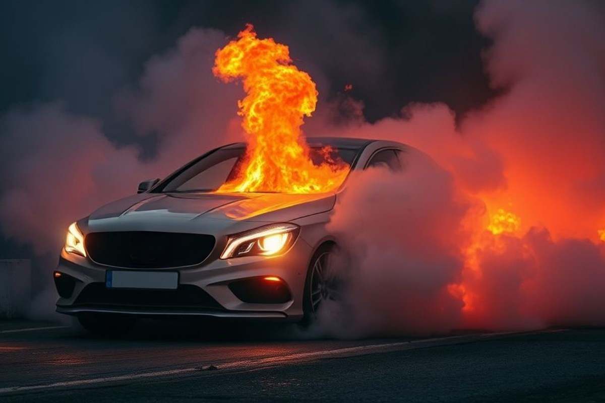 Auto in fiamme (Immagine realizzata con AI a scopo illustrativo) - Reportmotori.it