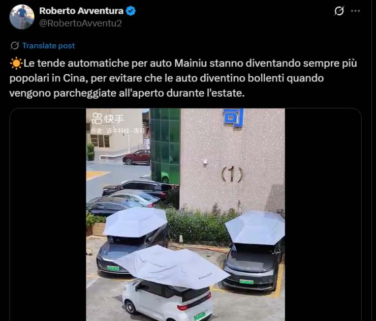 Tutto ciò fa capire come la potenza energetica delle città italiane sia ben lontana dal poter gestire la rivoluzione delle auto elettriche tanto attese. In Cina però intanto si è trovato almeno il modo di potersi riparare dal grande caldo di queste estati con quello che si presenta come un metodo molto semplice e anche intuitivo.